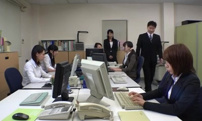 Japanese office cutie Mariru Amamiya is turned on and she sucks lots of spears