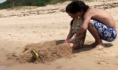 niegrzeczny japoński honies w an glamour plaża pummel w an na świeżym powietrzu garb